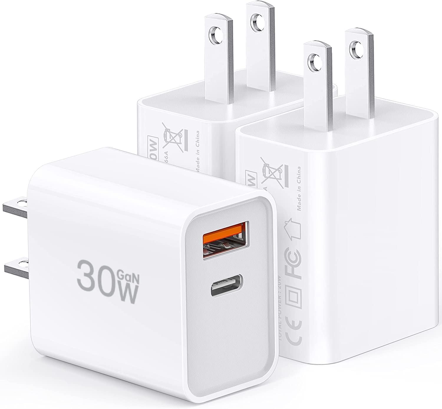 3 Pack USB C Wall Charger, 20W Durable Dual Port QC+PD 3.0 Power Adapter, Double Fast Plug Charging Block for iPhone 13/14/15/16/16 Pro/Pro Max/Plus, XS/XR/X, Watch Series 8/7 Cube,White
