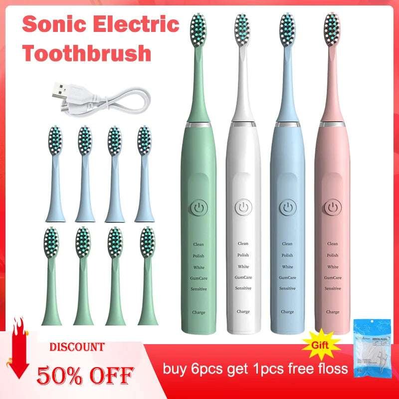 Sonic Electric Toothbrush Timer Brush 5 Mode USB Charger Rechargeable Deep Clean